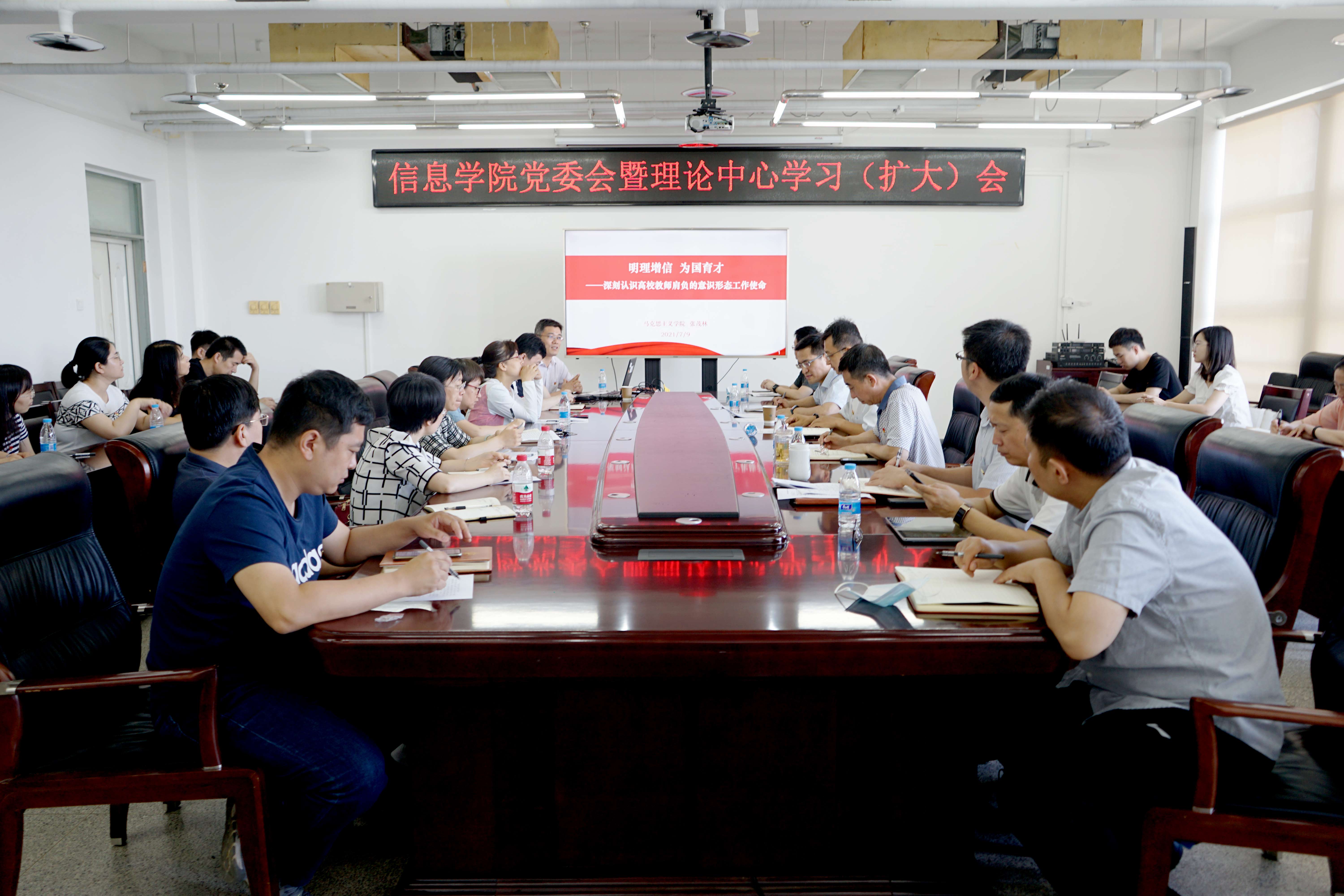7月9日,信息学院在瀚学楼1014召开党委会暨理论中心组学习(扩大)会,学院党委理论学习中心组成员参加会议,各系(中心)主任和党支部书记列席会议,学校党委理论学习中心组巡听工作小组成员、党史学习教育校内巡回指导组第三组成员、宣传部副部长尉峰应邀到会指导。会议由学院党委书记王月海主持。