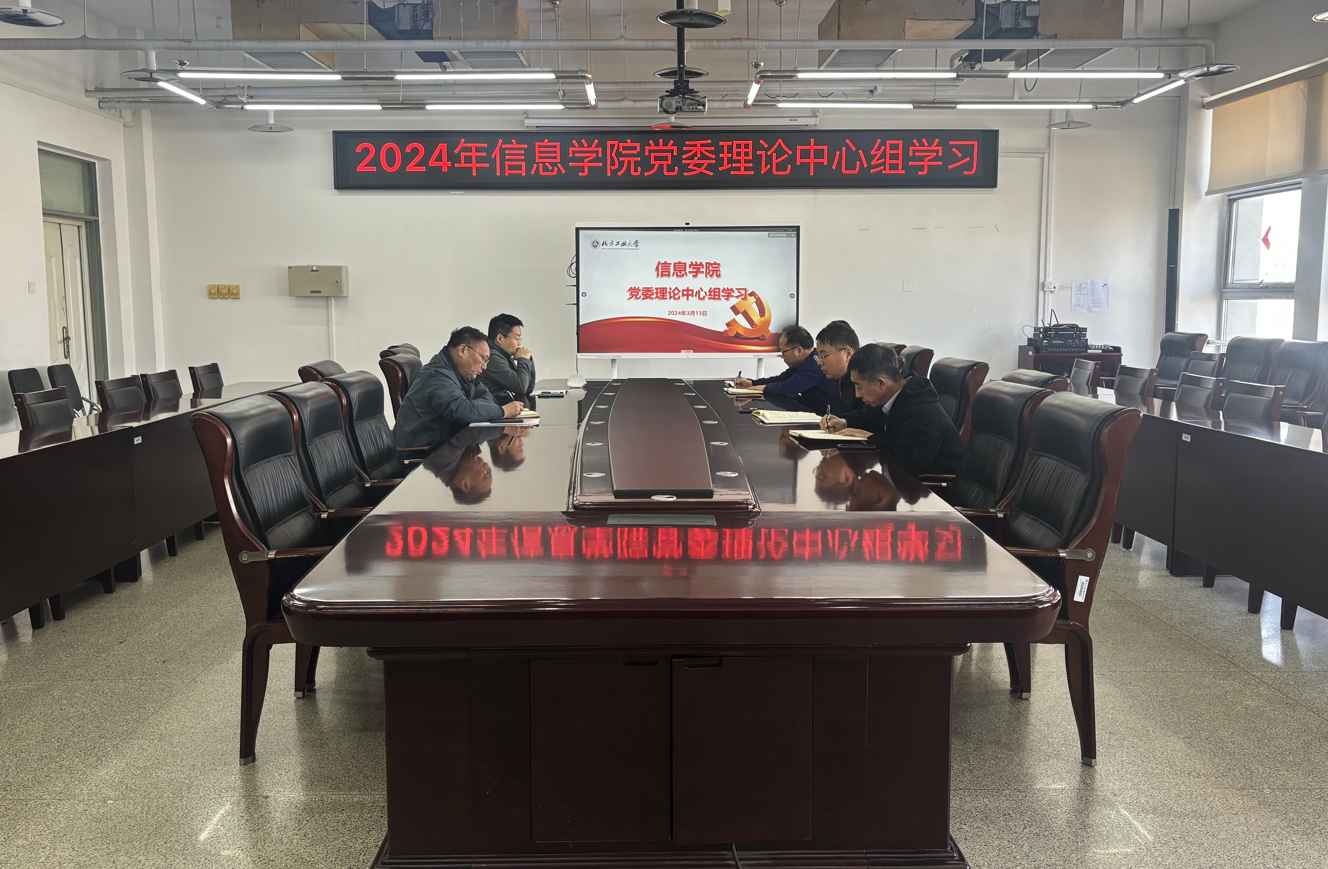 3月13日,信息学院党委理论学习中心组在瀚学楼1014会议室专题学习全国两会精神和习近平总书记关于加快发展新质生产力,扎实推进高质量发展的重要论述。学院党委书记王伟宾主持中心组学习。