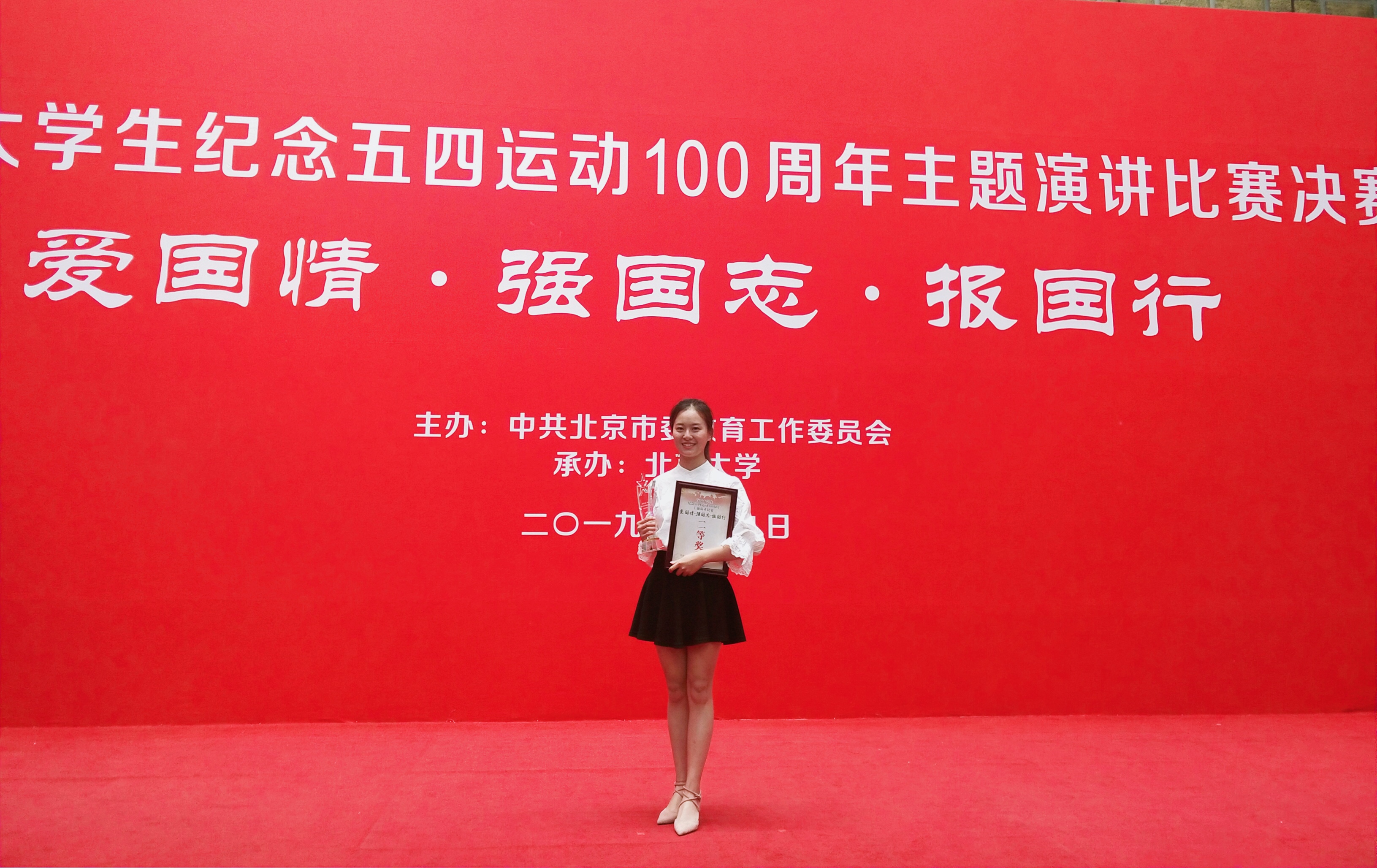 2019年5月9日, “爱国情 强国志 报国行”首都大学生纪念五四运动100周年主题演讲比赛在北京大学英杰交流中心举行,代表我校参赛的计类18-7班江泠睿同学以95.3分的成绩荣获二等奖。