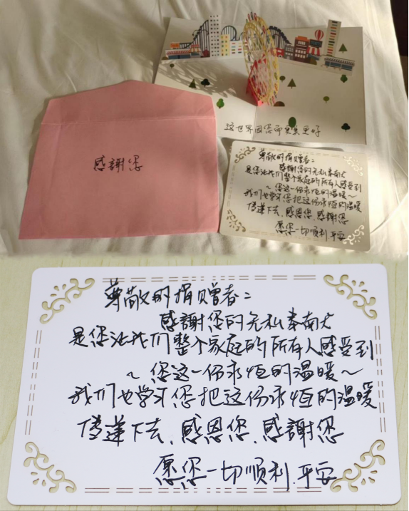 患者家属的感谢信和贺卡