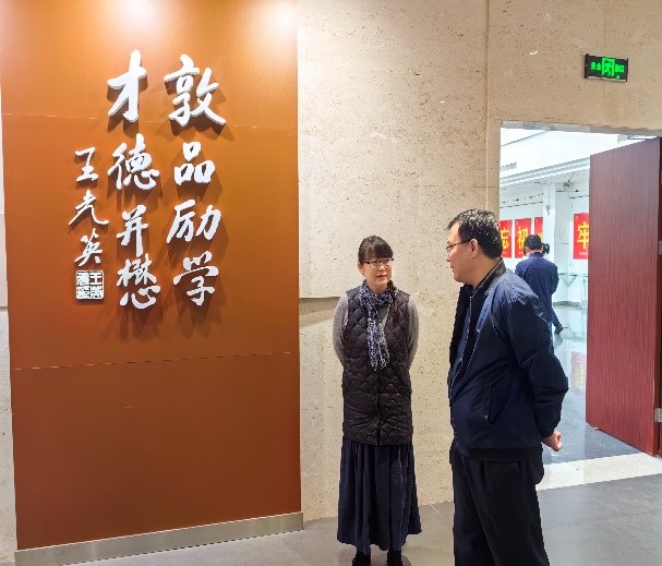 刘琳老师向程校长介绍学校历史