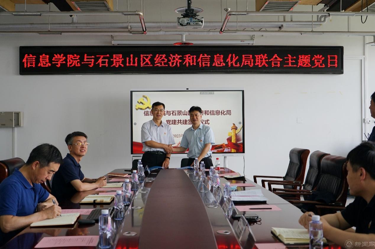 6月1日,石景山区经济和信息化局与我校信息学院开展联合主题党日活动。经信局党组副书记、局长张晓磊,副局长杨光、肖珂,信息学院党委书记王月海,院长马礼,党委副书记陈卫,副院长段建勇、鲁远耀,信息学院党委理论学习中心组成员、教师代表等双方20多名党员干部参加活动。同时,本次活动也是信息学院党委理论学习中心组(扩大)的一次集体学习,校党委宣传部副部长、校党委理论学习中心组巡听工作组成员陈国秀应邀到会指导。王月海主持此次主题党日活动。