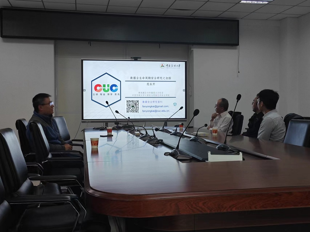 11月6日下午,应信息学院邀请,南开大学教授、博士生导师汪定、中国传媒大学网络与空间安全学院教授姜正涛和中国传媒大学网络与空间安全学院教授范永开在博远楼1023来我院开展学术报告,分别题为“如何评估口令强度评测算法”,“数据全生命周期安全研究之初探”以及“可搜索加密技术与算法”。通信工程专业责任教授张键红主持,通信工程专业30余名研究生参加。