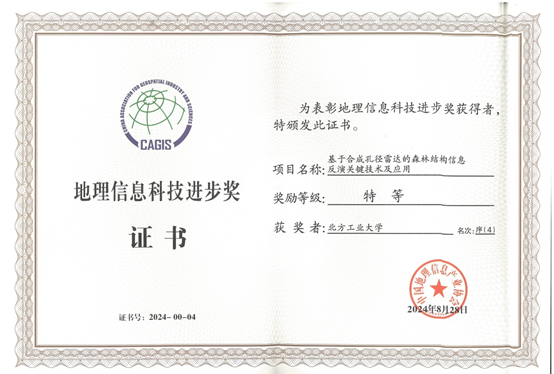 近日,2024年地理信息科技进步奖颁奖仪式在云南昆明举行。我校信息学院申文杰老师作为成员申报的项目成果“基于合成孔径雷达的森林结构信息反演关键技术及应用”获评科技进步奖特等奖。