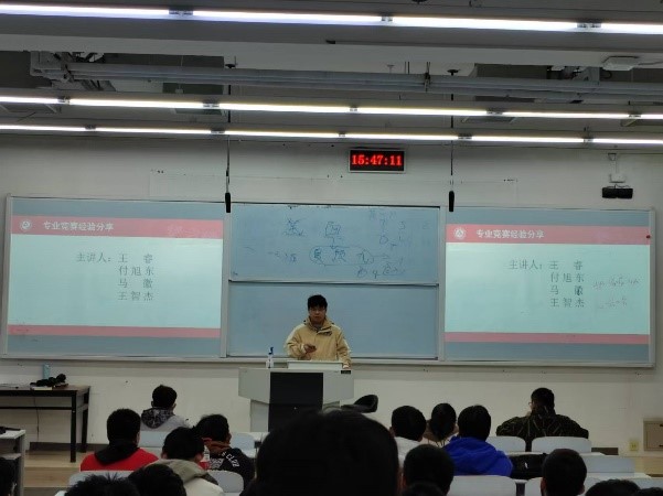 同时马徽、王睿、付旭东和王智杰四位同学就学习方法和参加竞赛给同学们分享了自己的经验。全国大学生数学竞赛、全国大学生数学建模竞赛、北京市大学生集成电路设计大赛模拟组、全国大学生电子设计竞赛、蓝桥杯全国软件和信息技术专业人才大赛个人赛电子类(嵌入式)/(EDA设计与开发)/(单片机开发)、大唐杯全国大学生移动通信5G技术大赛、全国大学生集成电路创新创业大赛(曾益慧创杯)/(紫光教育杯)、北京市大学生集成电路设计大赛数字组等等比赛。四位同学分享了自己的参赛经验,包括如何准备、学习哪方面的内容,学习资料在哪里获得等等方面做了详细的分享。